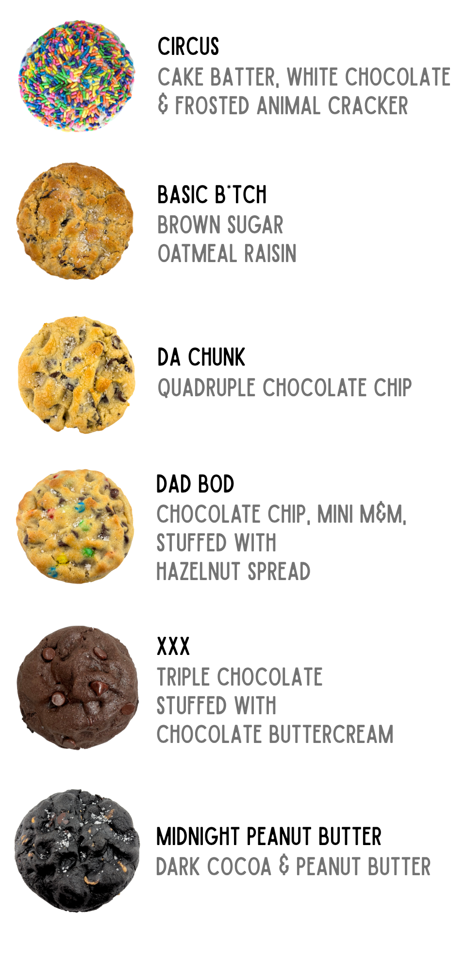 The Dad Bod. Crispy edges and a gooey inside. Available in Chaos & Crumbs and Death by Chocolate. It's never left our menu.